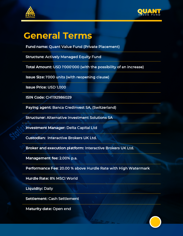 In the dynamic landscape of financial markets, the Quant Fund is tailored for investors seeking exposure to US equities and alternative underlying that have historically overperformed the SP500 and MSCI World. Our focus is to identify the top performers in the market, handpicking the cream of the crop for your investment journey.