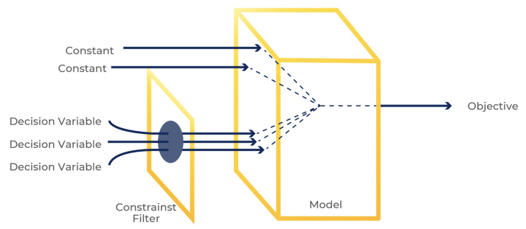 The initial Data Base is reduced to a filtered population that will be the input list for the next step (optimization).